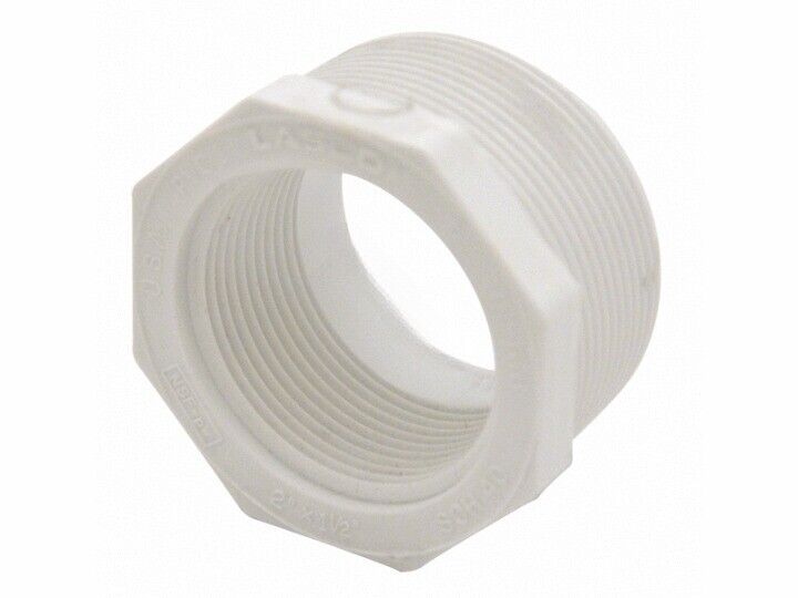 Lasco Fittings,SCH40 Threaded Reducer Bushing MPT X FPT, Dimensions: 2″ x 1.50″, Color: White, Material: PVC