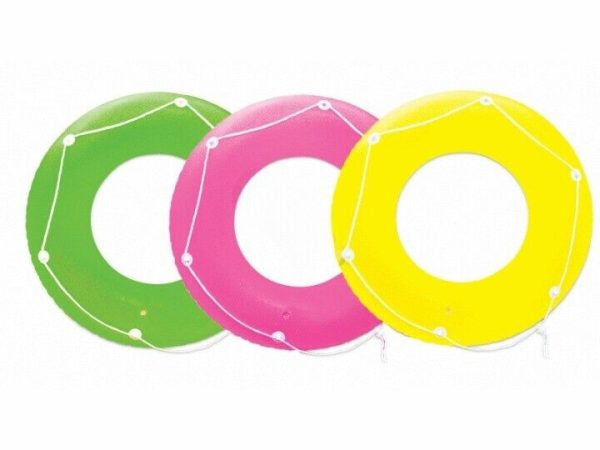 Poolmaster(R) Incorporated, Neon Frost Collection, 47″ Neon Frost Swim Tube; Includes: perimeter rope, Color: 3 Assorted – Yellow/Green/Pink, Gauge: 8.8g (0.22mm), Age Grade: 8+