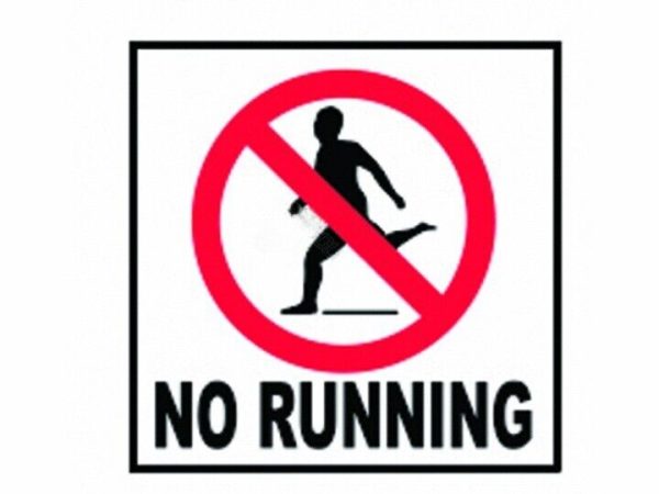 Custom Mosaics, DM702-09 Non-Skid Pool Deck Depth Marker; NO RUNNING WITH INTERNATIONAL SYMBOL, 6 x 6″ Tile, 1/4″ Thick, Ceramic White Tile with Red and Black Legend