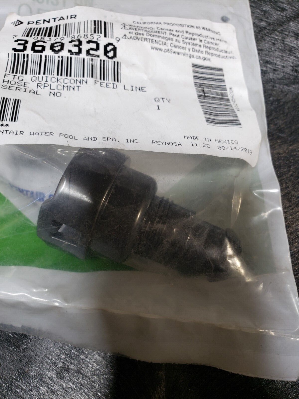 Fitting Quickconn Feed Line Hose Replacement (Pentair 360320)