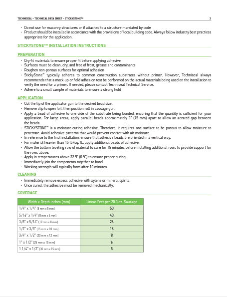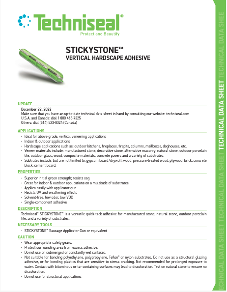 - SAUSAGE STICKYSTONE HARDSCAPE ADHESIVE