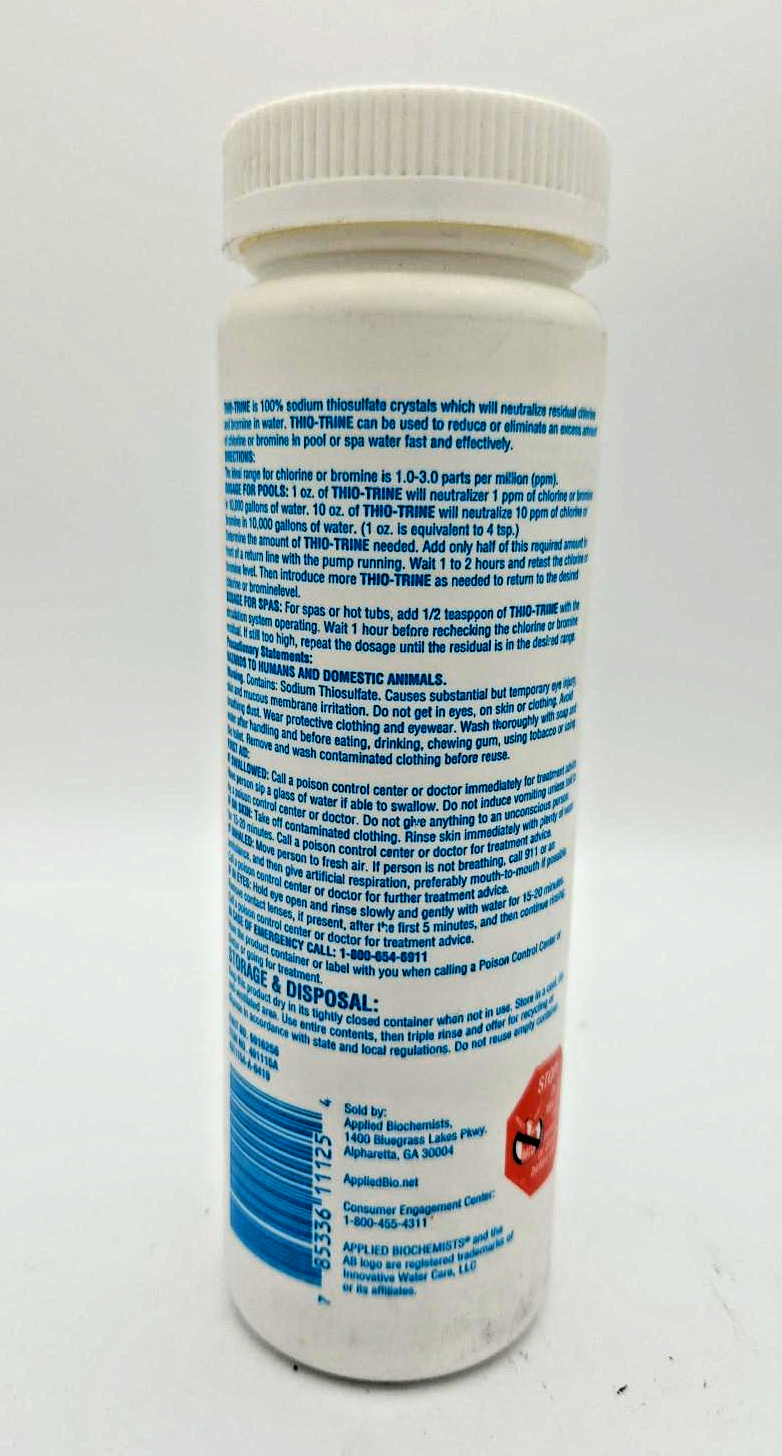 Thio-Trine neutralizes excess Chlorine or Bromide caused by accidental overuse of chemicals. Contains special 100% sodium thiosulfate crystals. Fast acting and highly effective.